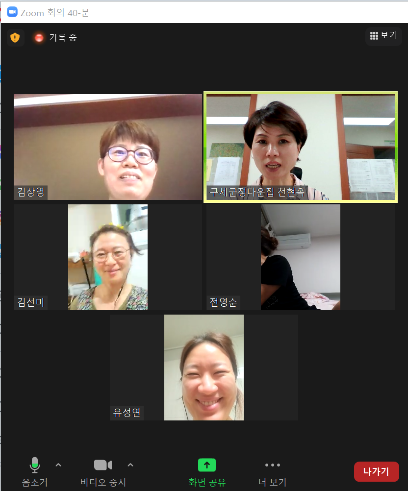 코로나 4단계로 외부활동이 어려워 각자 집에서 줌으로 근황토크