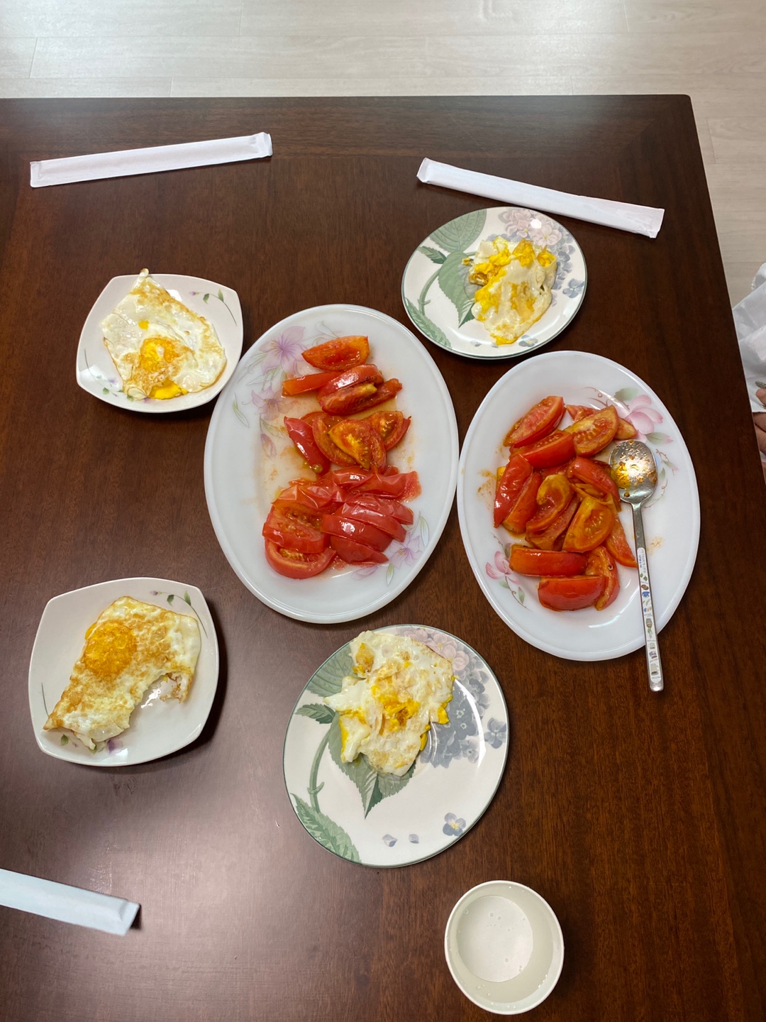 계란후라이 및 토마토 올리브구이 만들어서 함께 시식